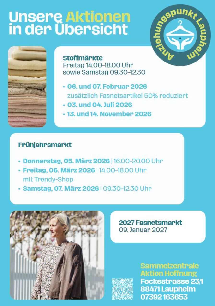 Wir als ArbeitgeberDie international tätige Modedesignerin Silke Debler war bei uns am Frühjahrsmarkt und hat ausschließlich aus unseren Secondhand-Kleidern tolle Secondhand-Looks kuratiert. Das war ein voller Erfolg und es war auch wunderbar zu sehen, welch tolle Looks aus unseren gebrauchten Textilien entstanden sind. Lesen Sie mehr dazu im Artikel der Schwäbischen Zeitung vom 05. März 2026:
