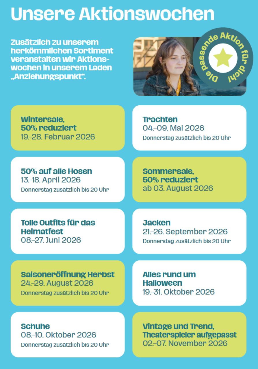 Im "Anziehungspunkt" Laupheim bieten wir zu bestimmten Zeiten spezielle Themenmärkte und Aktionswochen an.