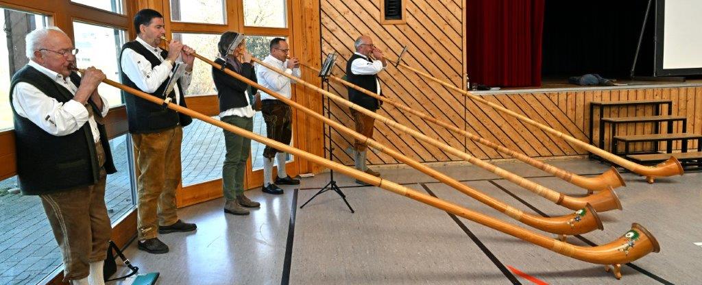 Die Alphornbläsergruppe Scharenstetten sorgt für den richtigen Ton