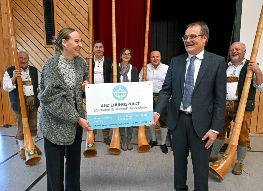 Lara Brunkel und Roman Engelhart freuen sich über unseren Ladennamen "Anziehungspunkt"